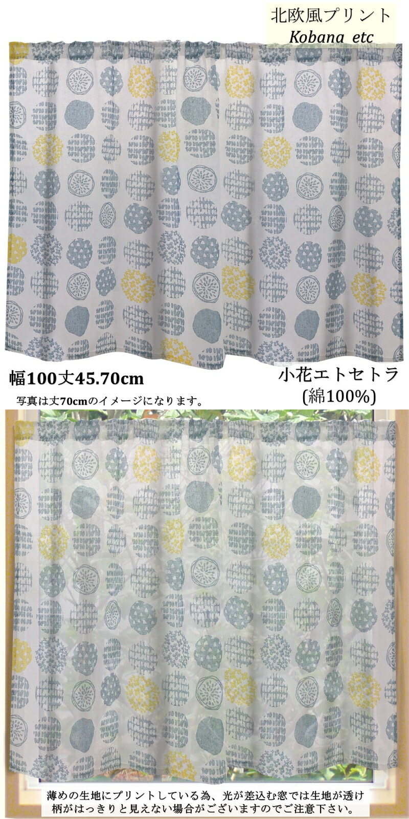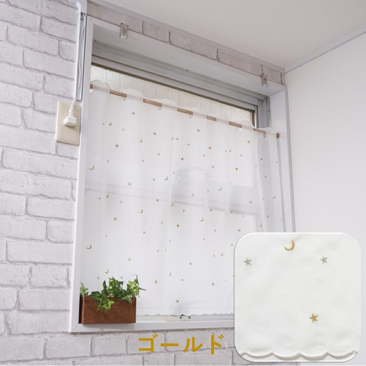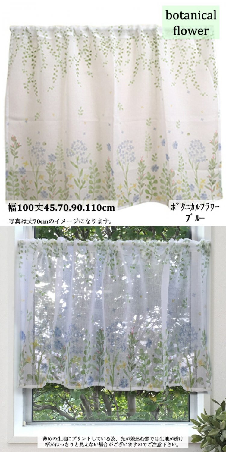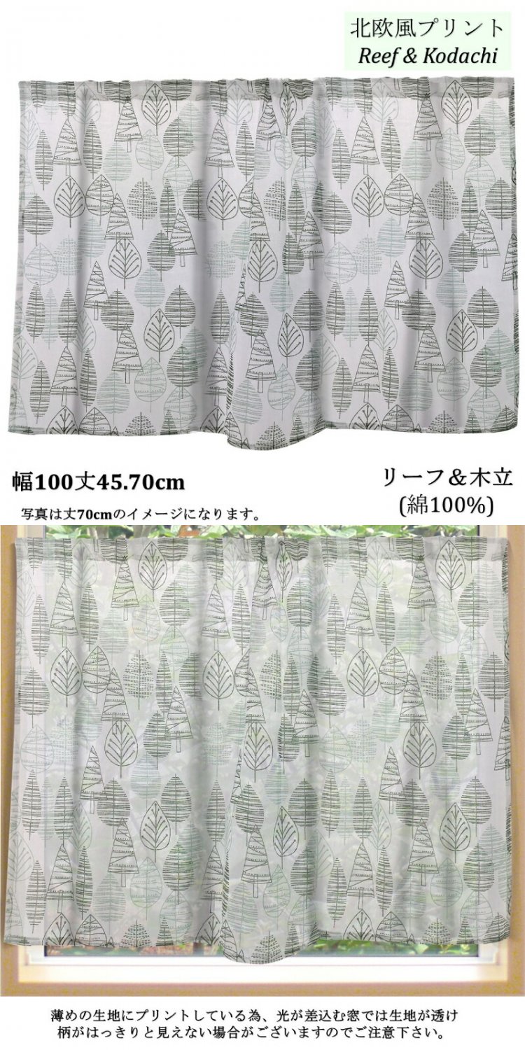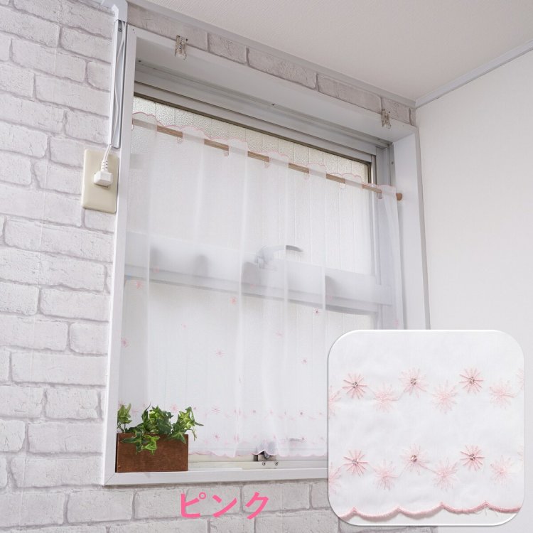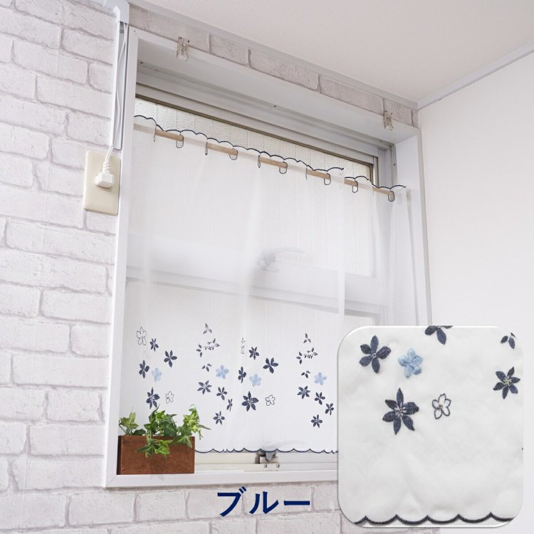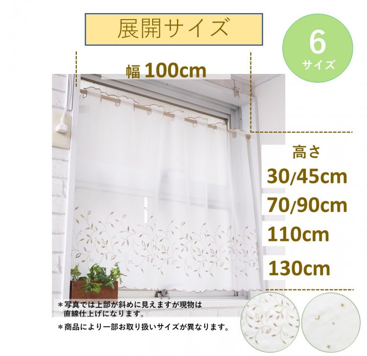 | 商品仕様 | ◆シャリ感のあるボイル生地に刺繍で柄を表現。 ●小窓やカラーボックス等の目隠しにピッタリ。 ●製品幅 100cm x製品丈 45 70 90cm ●適応窓幅60~90cm x適応窓丈70~90cm。 ●竿通し部分は、幅約1.5cmx長さ2.7cmです。 ●突っ張り棒の直径1.2cmまでのものがスムーズにご使用可能です。 ●ポリエステル100%(刺繍糸 レーヨン) ●中国製。 ●送料無料:ヤマト運輸 ネコポス *ポスト投函のみ日時指定はできません。 |