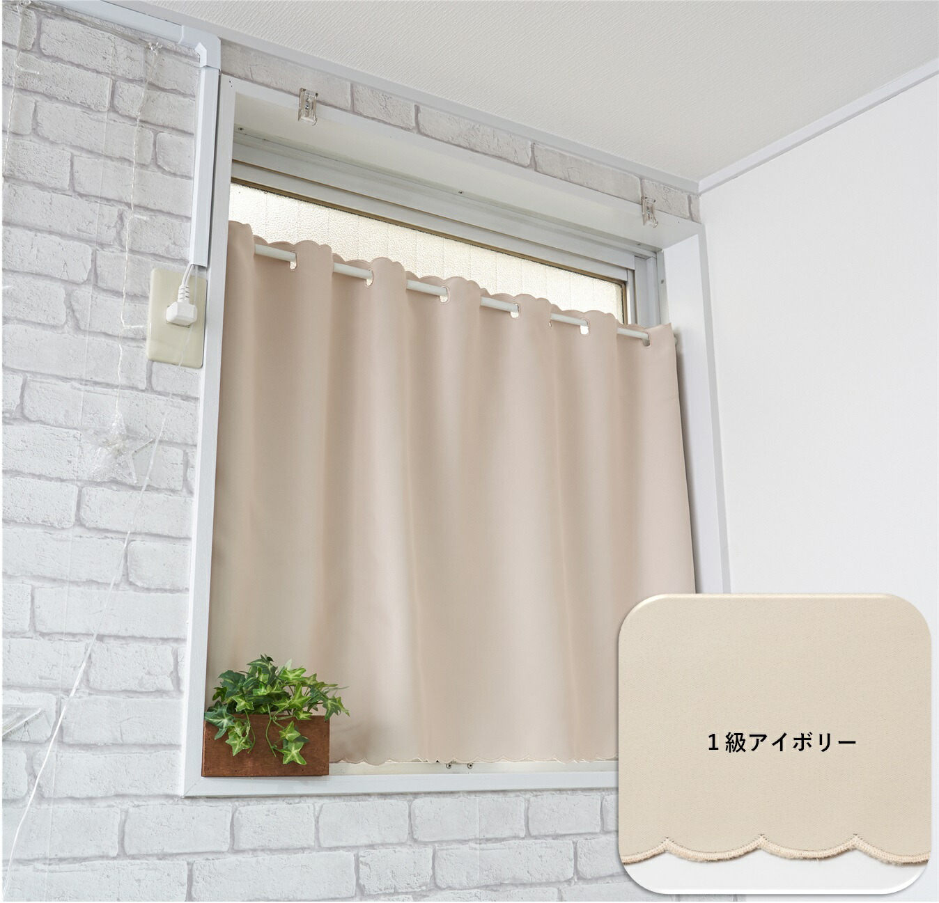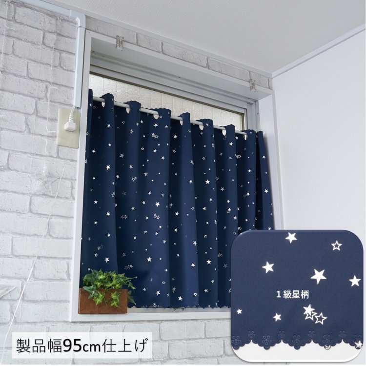 | 商品仕様 | ◆生地スペック 1級遮光タイプ:遮光1級 夏場の断熱効果(44.5%,10.5℃) 冬場の保温効果(32.8%,4.5℃) 2級遮光タイプ:遮光2級 夏場の断熱効果(15.7,3.7℃) 冬場の保温効果(30.8%,4.1℃) ◆小窓やカラーボックスなどの目隠しにピッタリ。 ◆製品サイズ :幅100cm ◆適応窓サイズ:幅50~80cm ◆竿通し部分は、幅約1.5cmx長さ2.7cmです。 ◆突っ張り棒の直径1.2cmまでのものがスムーズにご使用可能です。 市販の物をご用意ください。 ◆洗濯は洗濯ネットに入れ、弱水流で洗ってください。 ◆生地内側の黒糸が表から黒く見える部分があります。 ◆洗濯ラベルは付いていません。 ◆洗濯ネットに入れて弱水流で洗濯してください。 ◆素材:ポリエステル100% ツッパリポールは別売りで販売中になります。◆中国製 |