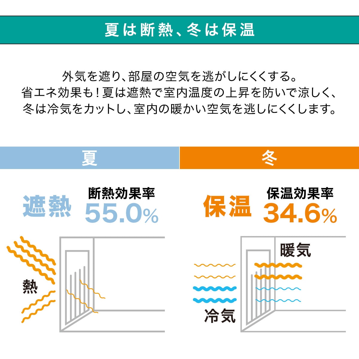 遮熱効果:外気を遮り、お部屋の空気を逃がしにくくします。